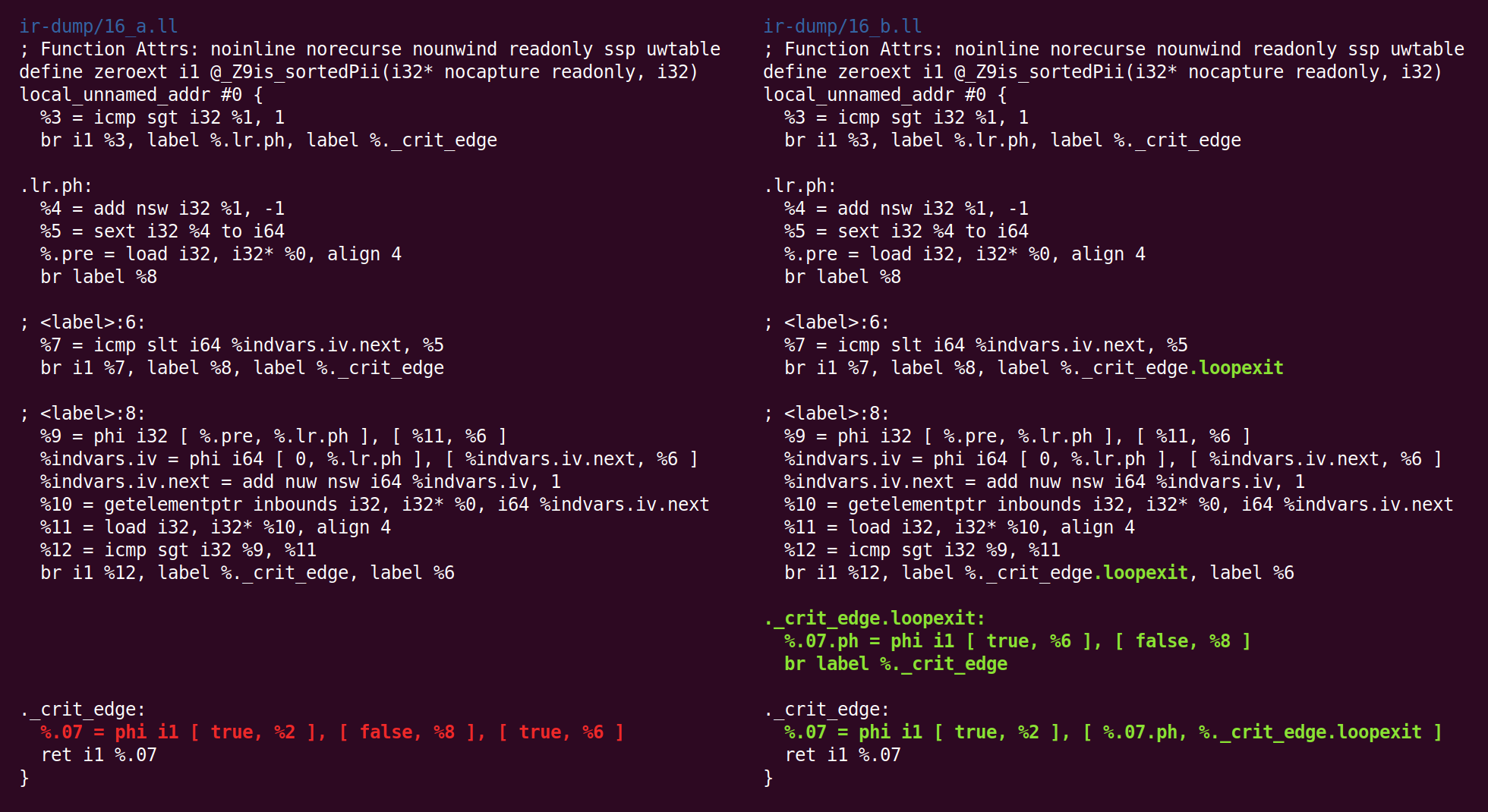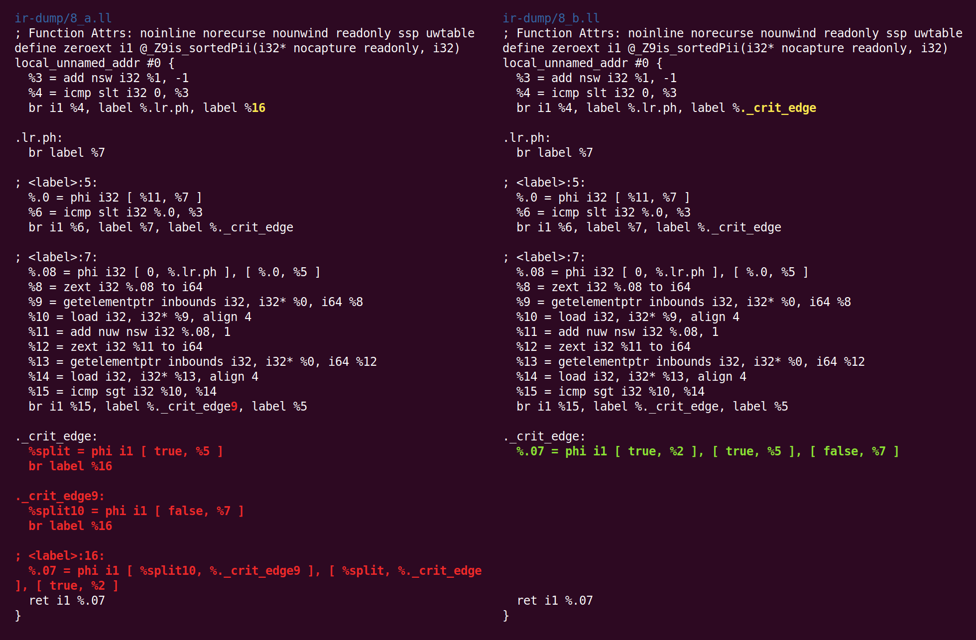 Now things get a tiny bit weird, “jump threading” undoes what “canonicalize natural loops” did earlier: